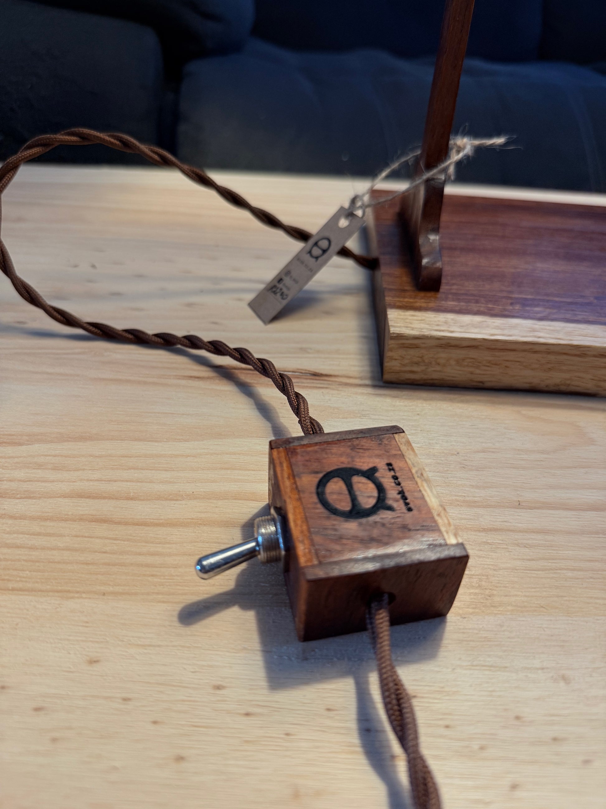 Custom Wood Hardware: In place of standard plastic components, this lamp features a custom hand-built wooden box for the toggle switch, ensuring the tactile experience of the piece is as refined as its visual appeal.